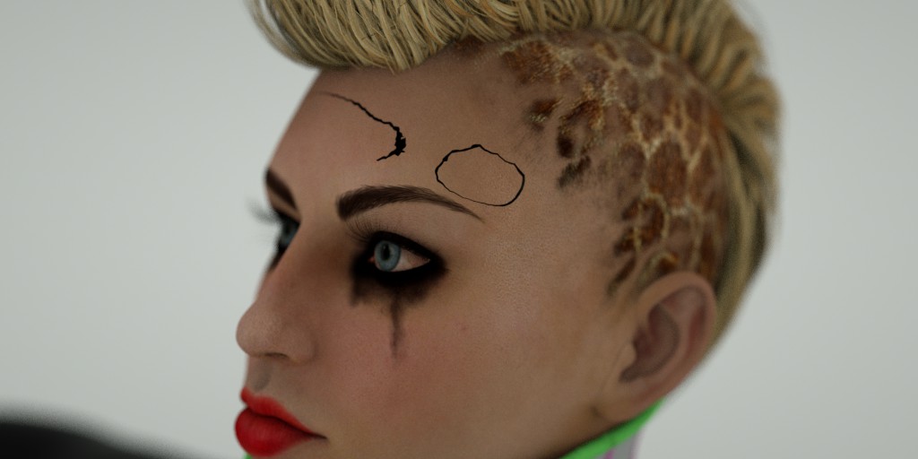 Viel schlimmer ist das bei Haaren, die in Poser absolut korrekt dargestellt werden, in Octane aber irgendwie mit dem Charakter /Kopf interferieren, d.h., die Transmap läuft offensichtlich irgendwie durch die Hautschicht mit deren Map hindurch und verursacht da eine Störung, die sich in schwarzen Linien oder ganzen Feldern zeigt.