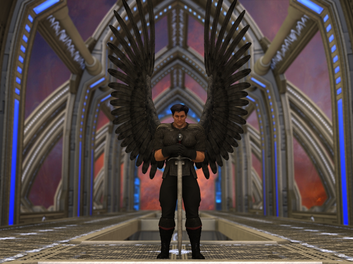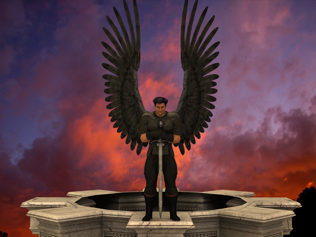 Bei Bild eins hätte ich die Kamera wohl eher nach unten verschoben und nach oben blicken lassen, dabei den Gianni auch etwas breitbeiniger dastehen lassen, zu den Flügeln wurde entsprechend ja schon geschrieben...