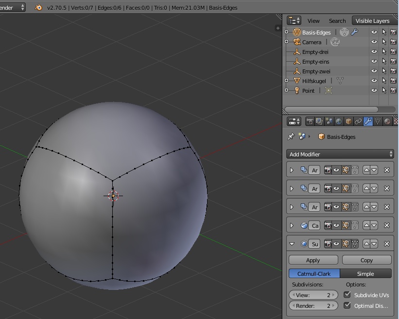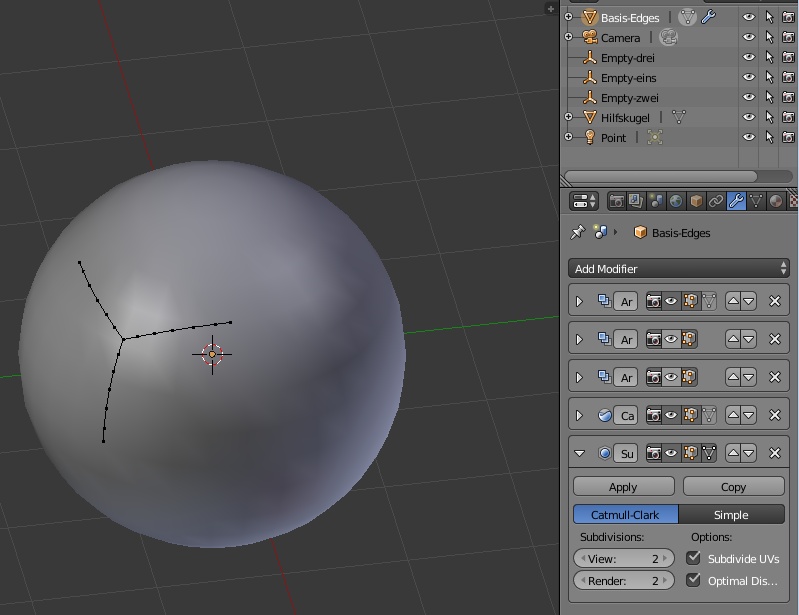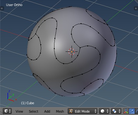 da der ball ja sehr gleichmäßig aufgebaut ist reicht für den anfang eine halbe edge eines würfels