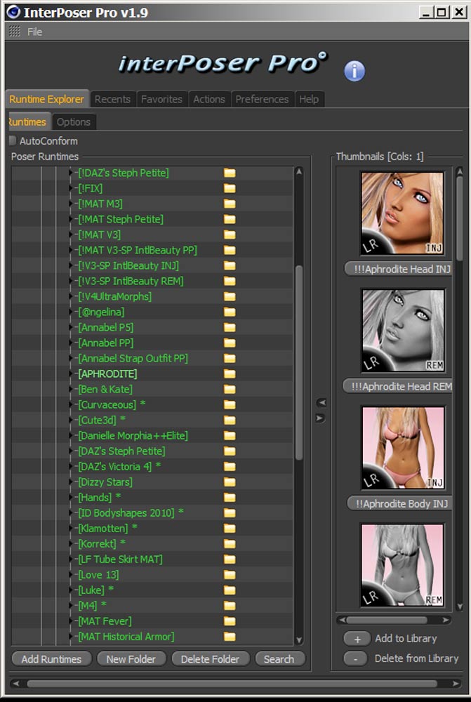 • Wenn Du "nur" V4, M4 usw benutzen möchtest und kein Gen und keine duf-Dateien - dann kannst Du, wie ich, die Figuren, Bekleidung, Posen usw. mit "Interposer Pro" importieren und (FAST!!!) alle Morphs, sowie alle Bewegungen in C4d nutzen. Also ausrichten, usw. alles in C4D.