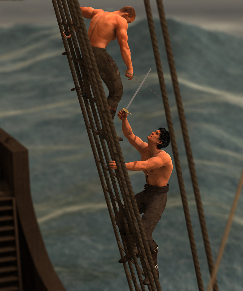 Echte Seemänner stehen mit beiden Beinen fest im Boot. Vielleicht schmeißt ja die Welle, die da im Hintergrund kommt alles etwas durcheinander. Da werden noch Bilder folgen. Ich fands nur schade dass die beigefügten weiblichen Posen nicht für den Female-Pirat gedacht sind, aber das kann man ja anpassen.