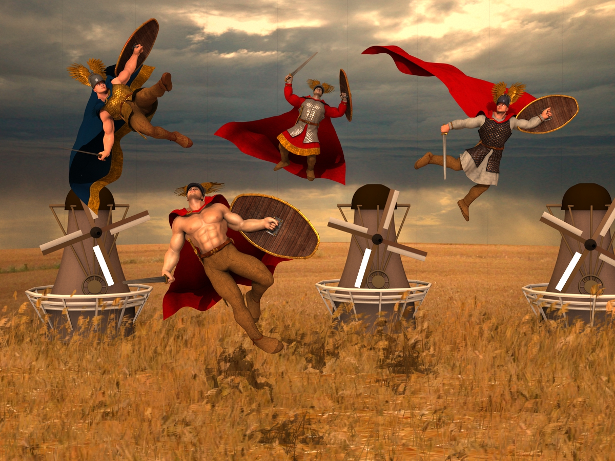 • Als die Kelten die Niederlande das erste Mal besuchten hatten sie große Probleme mit dem Wind, den die hinterhältigen Holländer hatten große Rotatoren aufgestellt und die Capes und Flügelhelme der Kelten funktionierten als gute Windfänger ...