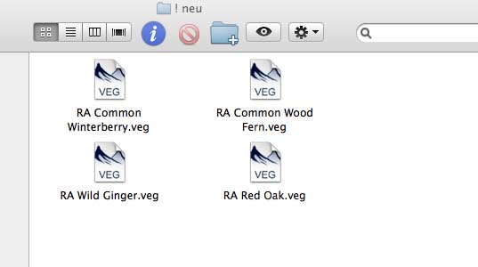 Mit dem Tip von SIG habe ich erst mal eine praktikable Lösung. Übrig bleibt indes, daß ich nicht weiß, weshalb manche Pflanzen im veg-Format angeboten werden, andere aber im vob-Format. Isses für die Arbeit an einer Szene völlig wurscht, welches Format ich benutze oder gibt es da Tücken, auf die man als Anfänger nicht so schnell stößt? Ich habe schon versucht etwas über das Dateisystem von Vue zu erfahren, bin aber weder bei eon selbst noch über Google fündig geworden.