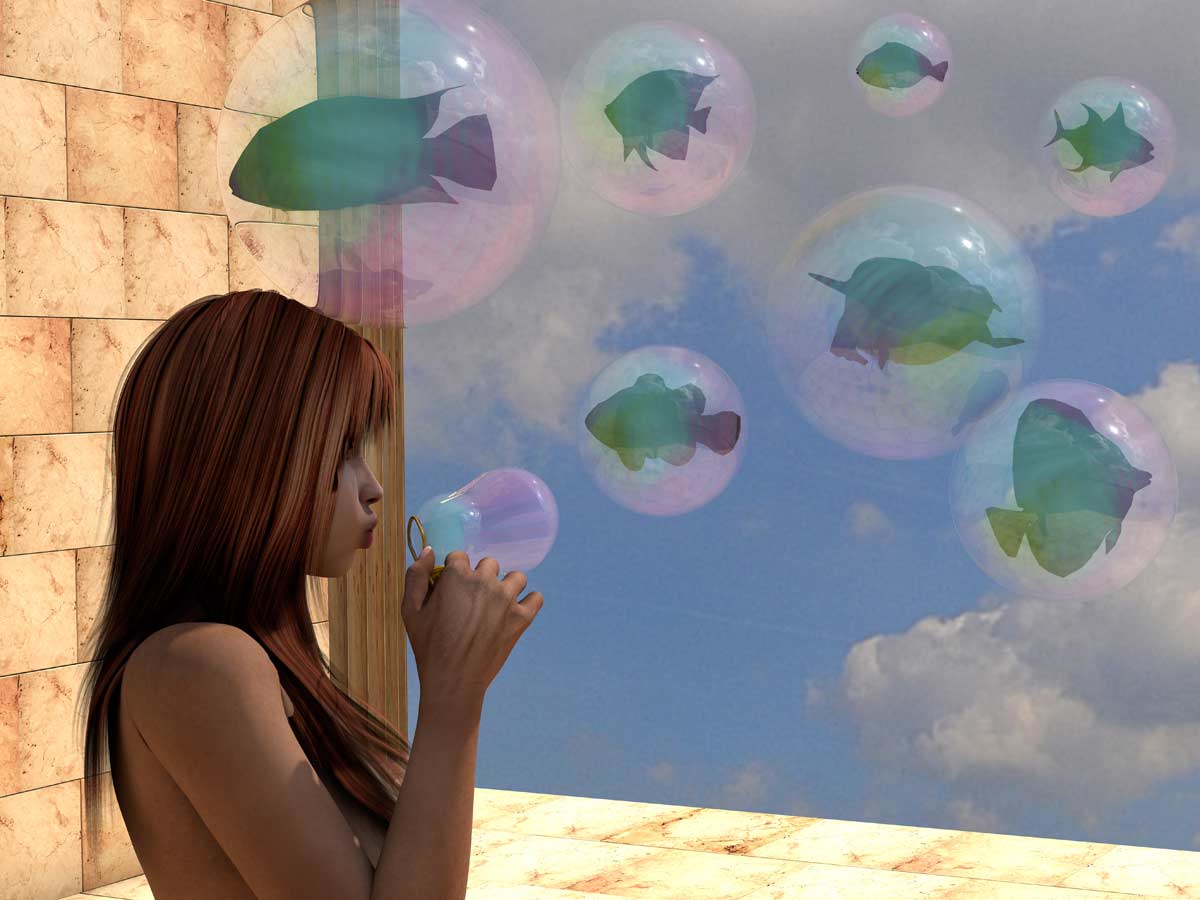 Die Seifenblasentextur ist als Blase ok - nur die Fische darin kommen schlecht. Sind die Fische deutlicher, sind die Seifenblasen schlecht. Hab lange probiert, aber es nicht besser hinbekommen. ![]()