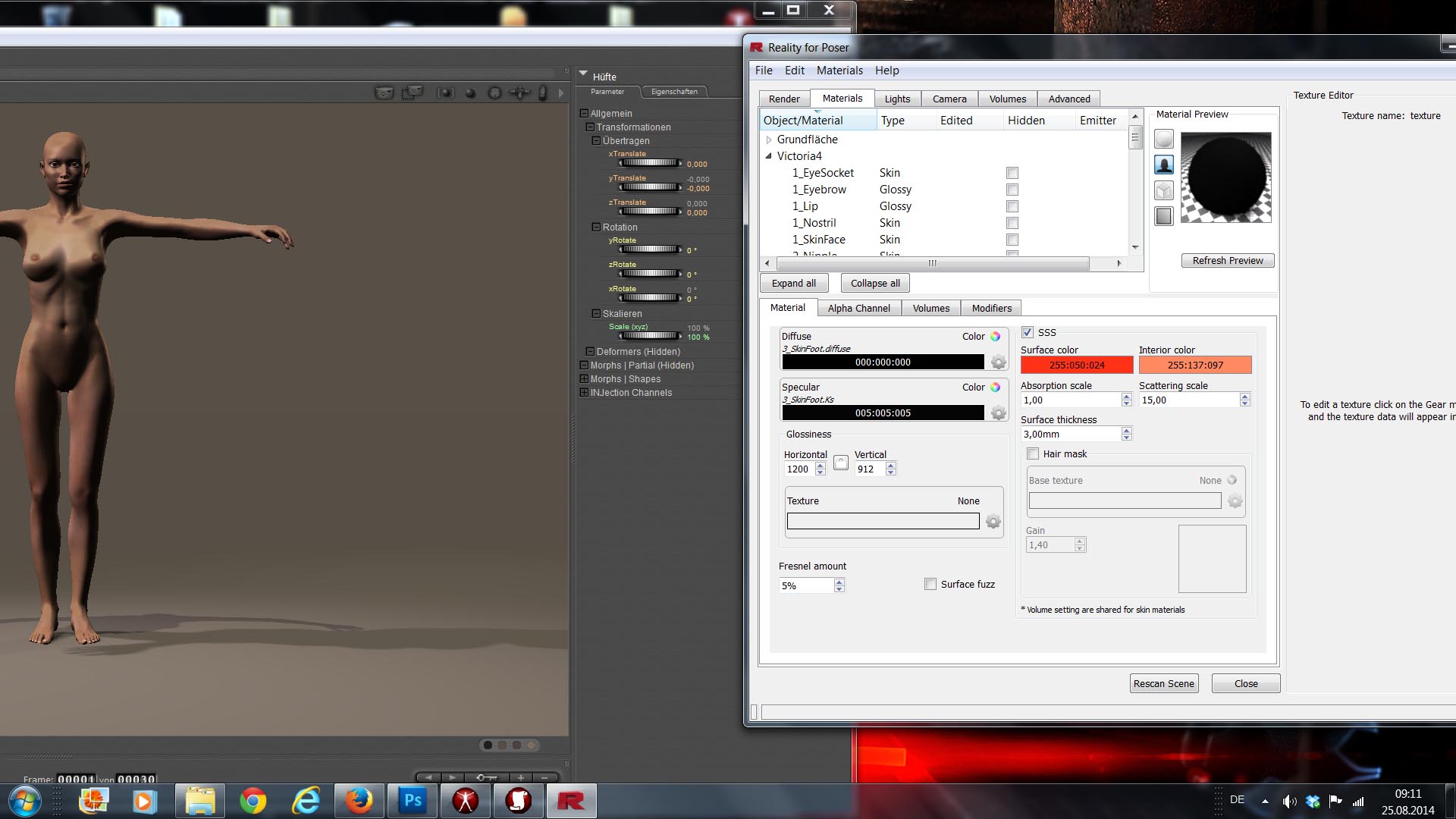 Reality erkennt zwar wenn ich in Poser Texturen austausche und sagt mir das dann, aber es bleibt in der Vorschau alles schwarz und auch beim Rendern mit Luxrender.
