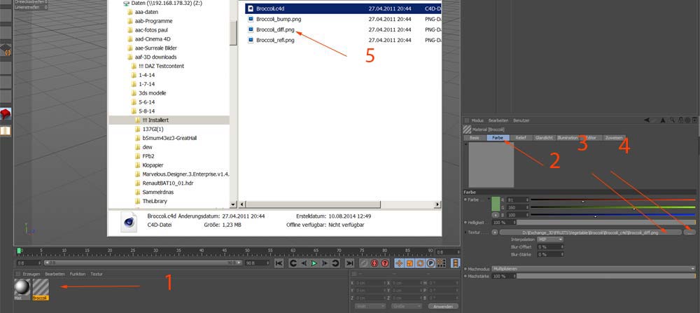 Alle Texturen befinden sich im Ordner des Modells, und Cinema hat keine Schwierigkeiten alle Dateien zu finden sowie zu öffnen.