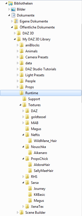 ich habe heute zufällig und völlig überrascht festgestellt, dass sich unter Windows in den Bibliotheken, die ich nie nutze, weil bisher zu faul war zu erforschen wofür die gut sind, ein My DAZ3D Library - Ordner eingenistet hat.