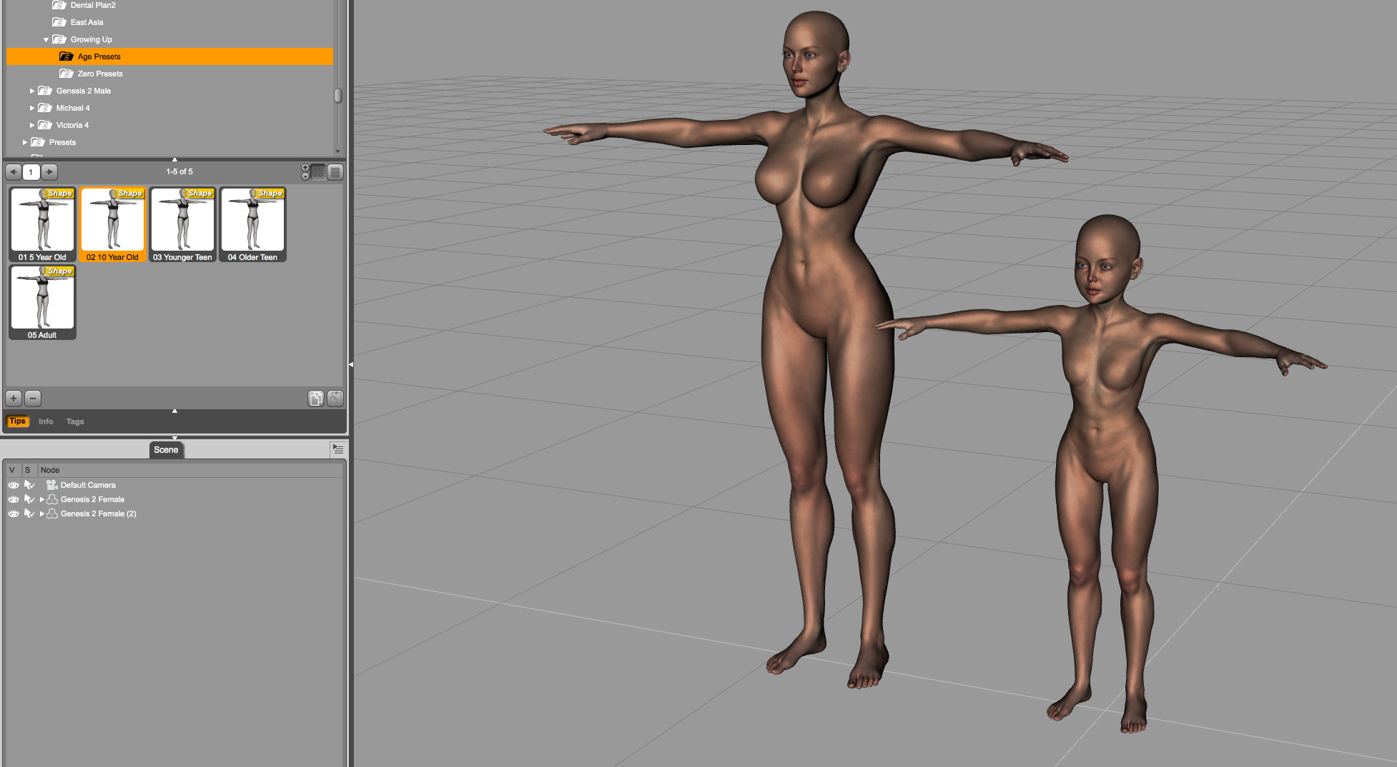 Ich brauche für eine Szene ein ca. 10-jähriges Mädchen. Ich bekomme zwar die Größe hin (mit Growing-Up for Genesis, bzw. mit Scale), aber das Mädchen hat noch immer deutliche Brüste, was für eine Zehnjährige doch sehr frühreif wirkt