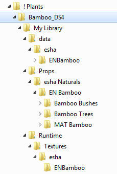 Ich hänge mal einen Screenshot an von meinem Produkt-Ordner. Im Ordner "! Plants" habe ich Unterordner für alle meine Pflanzenprodukte. Den Ordner für die DS-Version meines Bambus-Packs habe ich geöffnet, so dass du den Inhalt sehen kannst. Der gesamte Ordner "Bamboo_DS4" wird dann gezippt zum Weitergeben.