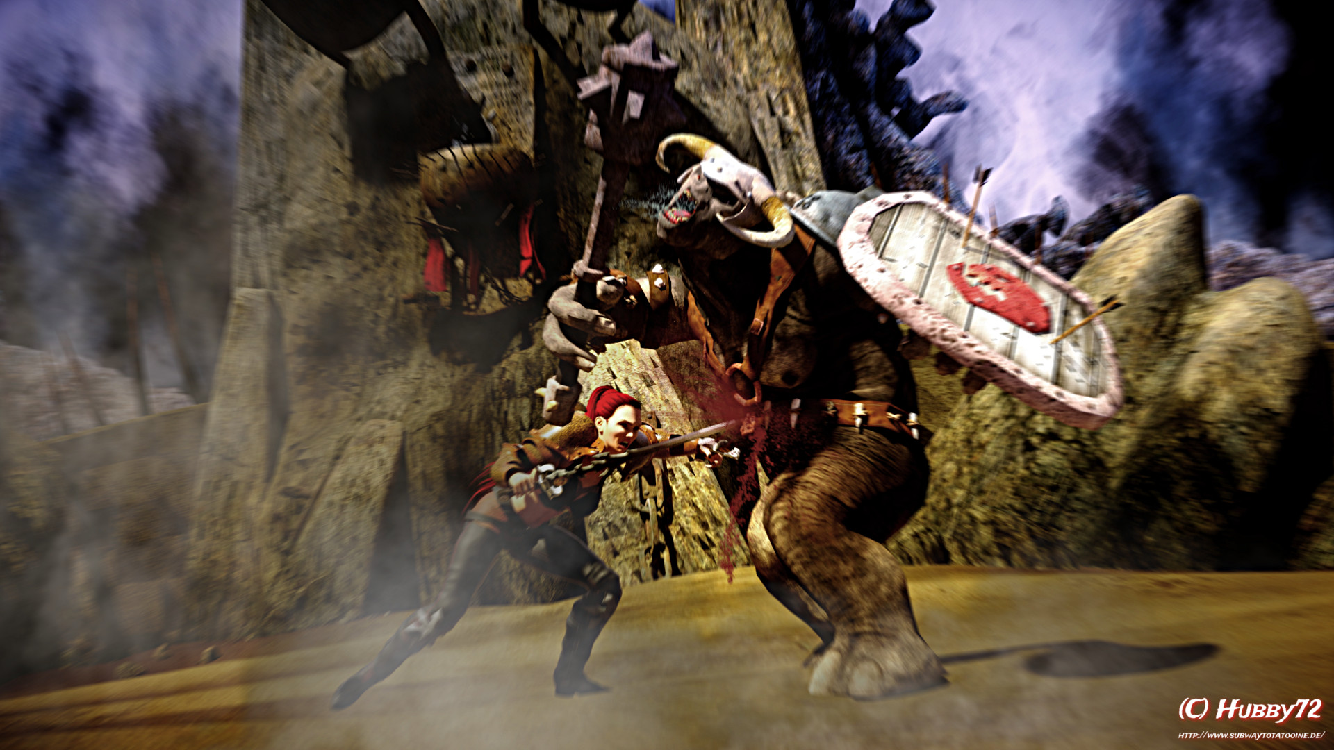 Für die Dynamik im Kampfbild habe ich mit dem spherical Effect rumgespielt. d.h. das Bild wölbt sich wie auf einer Kugel in der Mitte.
