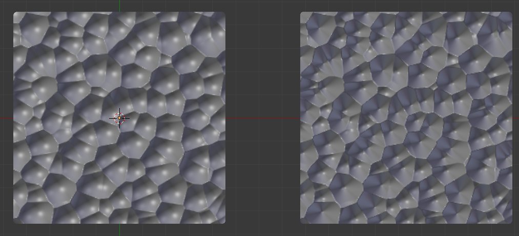 Nachfolgender Screen zeigt die Wirkung des Displacement-Modifier von Blender mit einer Variante der Voronoi-Textur.