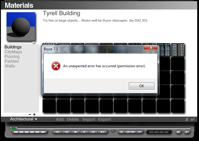Allerdings kriege ich es nicht hin in Bryce die Textur aufzutragen. Ich war schon im Materialeditor, aber beim Import kommt immer ne Fehlermeldung und wenn ich das Ding über die Bridge nach DAZ rüberschiebe, kommt nur so ein kleiner Schnipsel an.