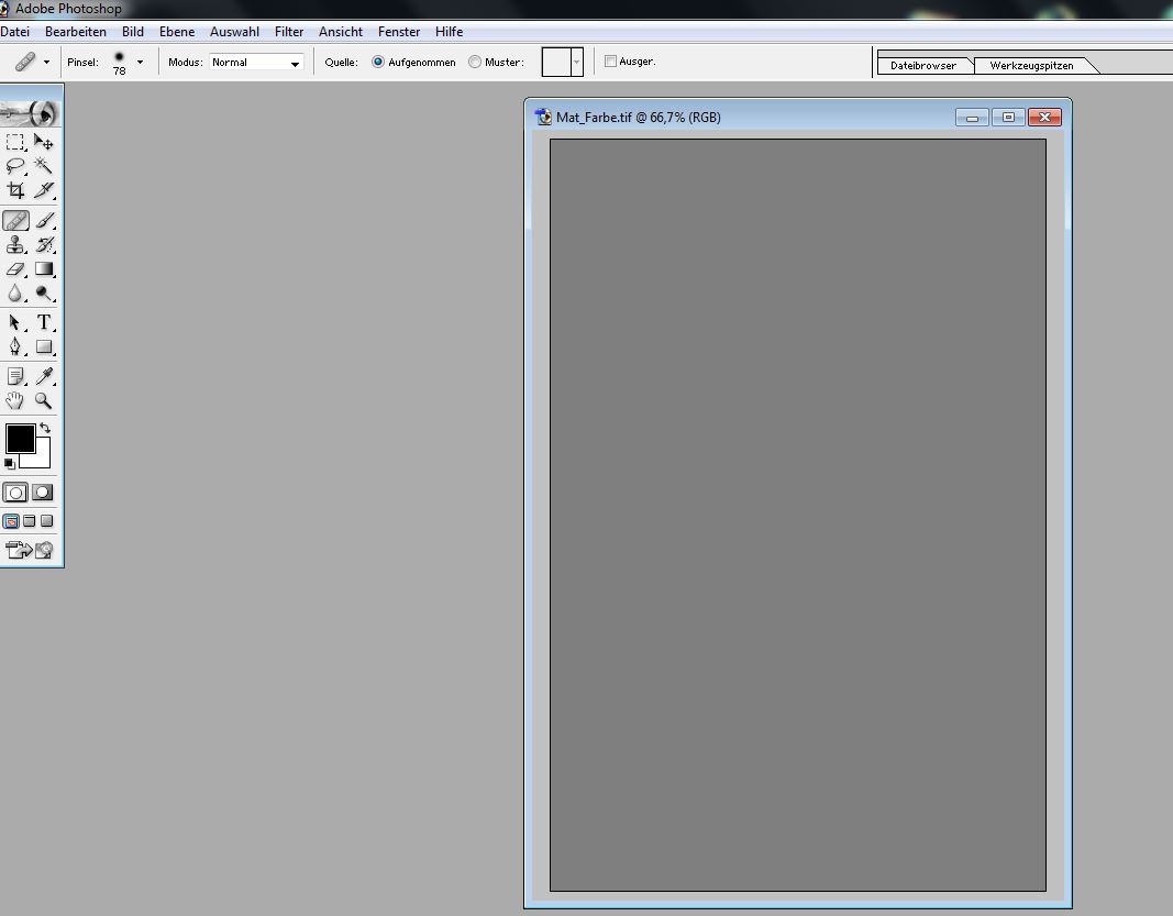 In Bild_2 sieht man nun die aus Bodypaint heraus abgespeicherte Textur-Map wie sie in Photoshop angezeigt wird. Leider wird hier nur eine durchgehende graue Fläche angezeigt, bei der die Umrisse der [lexicon]Polygone[/lexicon] verloren gegangen sind.