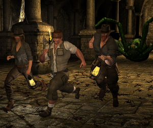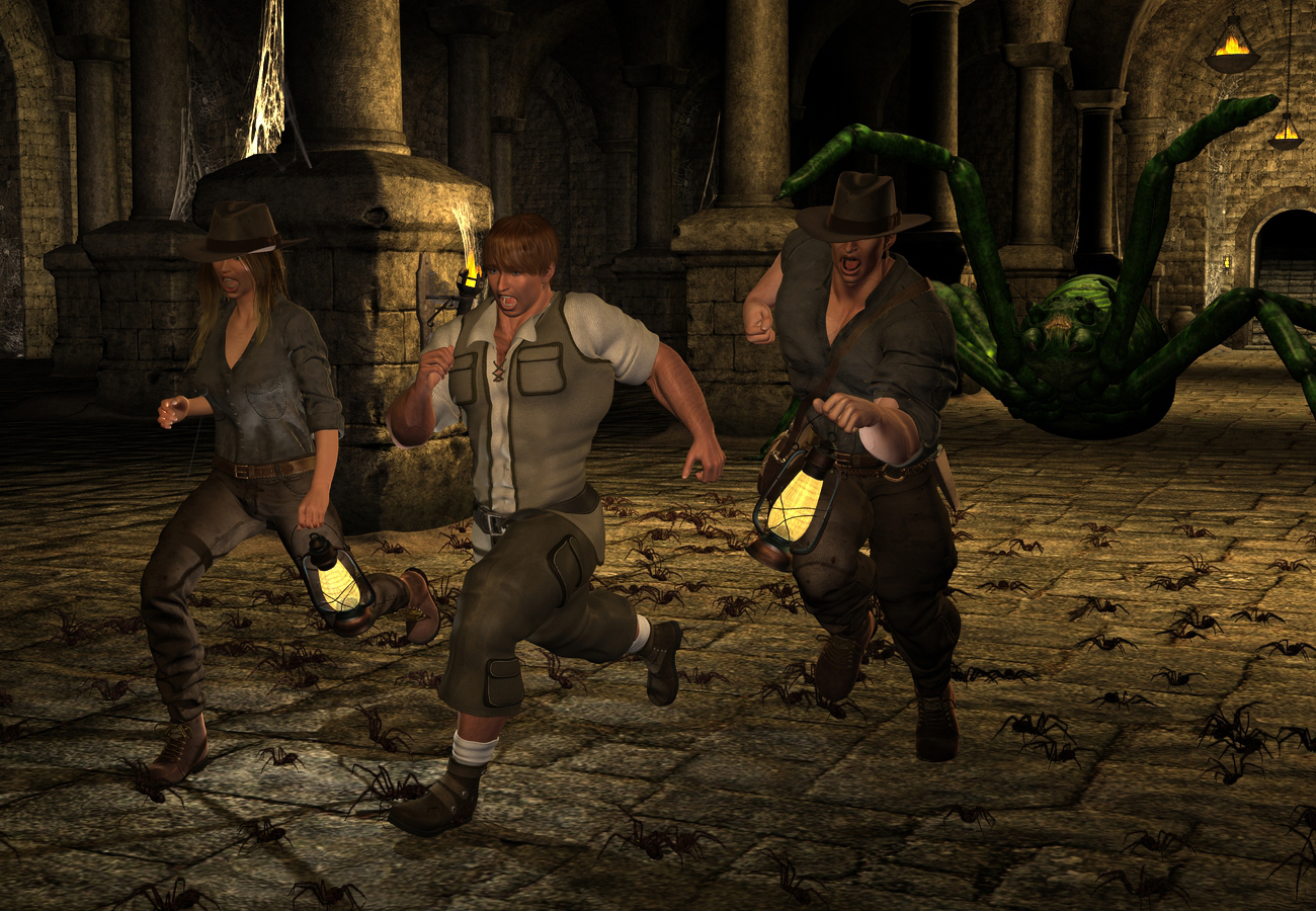 Interessant war hier dass das Hemd von Genesis (mittlere Figur) im Arbeitsfenster korrekt saß, aber im Render an vielen Stellen die Haut durchschimmerte.