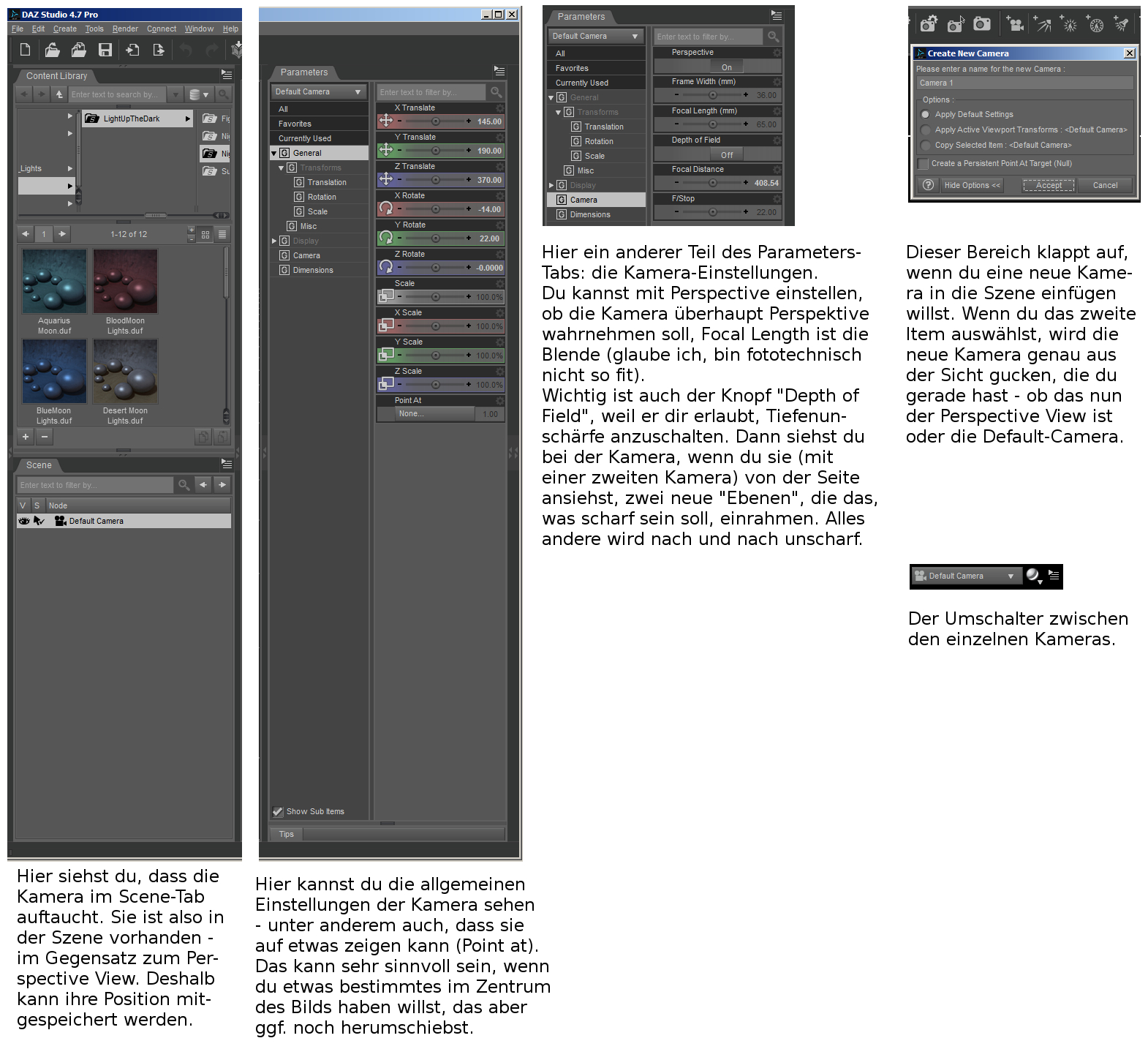 Danke erst einmal für eure Antworten, kann jetzt aber erst antworten. Leider bin ich aus den obrigen nicht ganz schlauch geworden. Mein Problem, ich habe noch NIE mit der Camera gearbeitet. Meistens lösche ich sie sogar gleich. Aber wie so üblich im DAZ-Studio und diesem fantastischen Board, wenn jemand so freundlich wäre, es mir einmal Schritt für Schritt zu erklären - ich habe immer och Probleme mit den Fachbegriffen - denke ich, klappt es, vorallem weil ich in den nächsten Tagen mein Comic wieder in Angriff nehmen möchte....