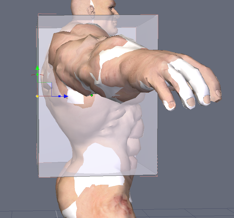 und strauchle schon nach ca. 7 Video-Minuten, weil es mir nicht möglich ist den Cube von der Flächenauswahl her zu verkleinern, also wie hier im Video an den Körper anzupassen.