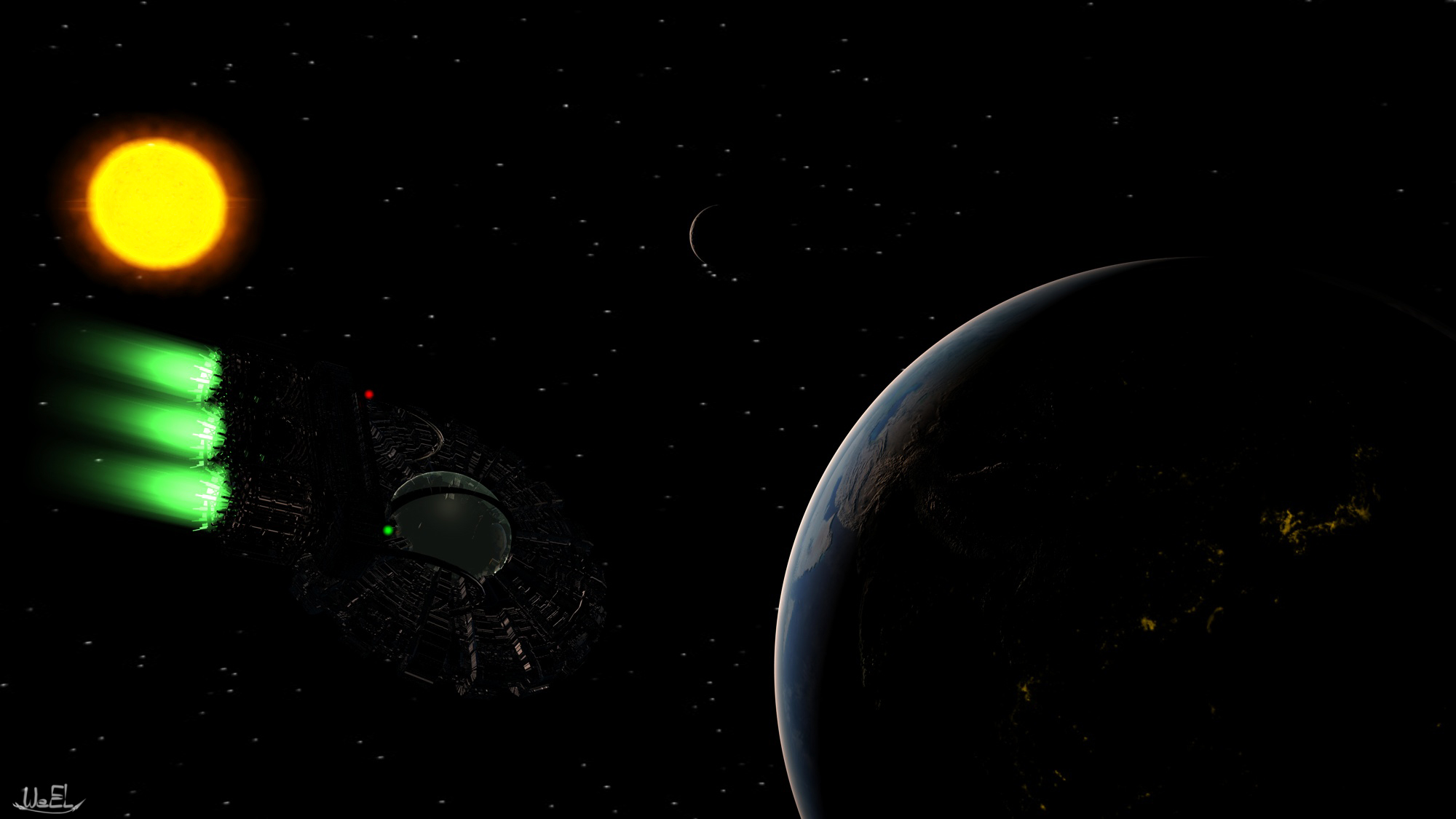 Edit: Wie hast du die Lichter auf der Erde so toll hinbekommen? Citylights?