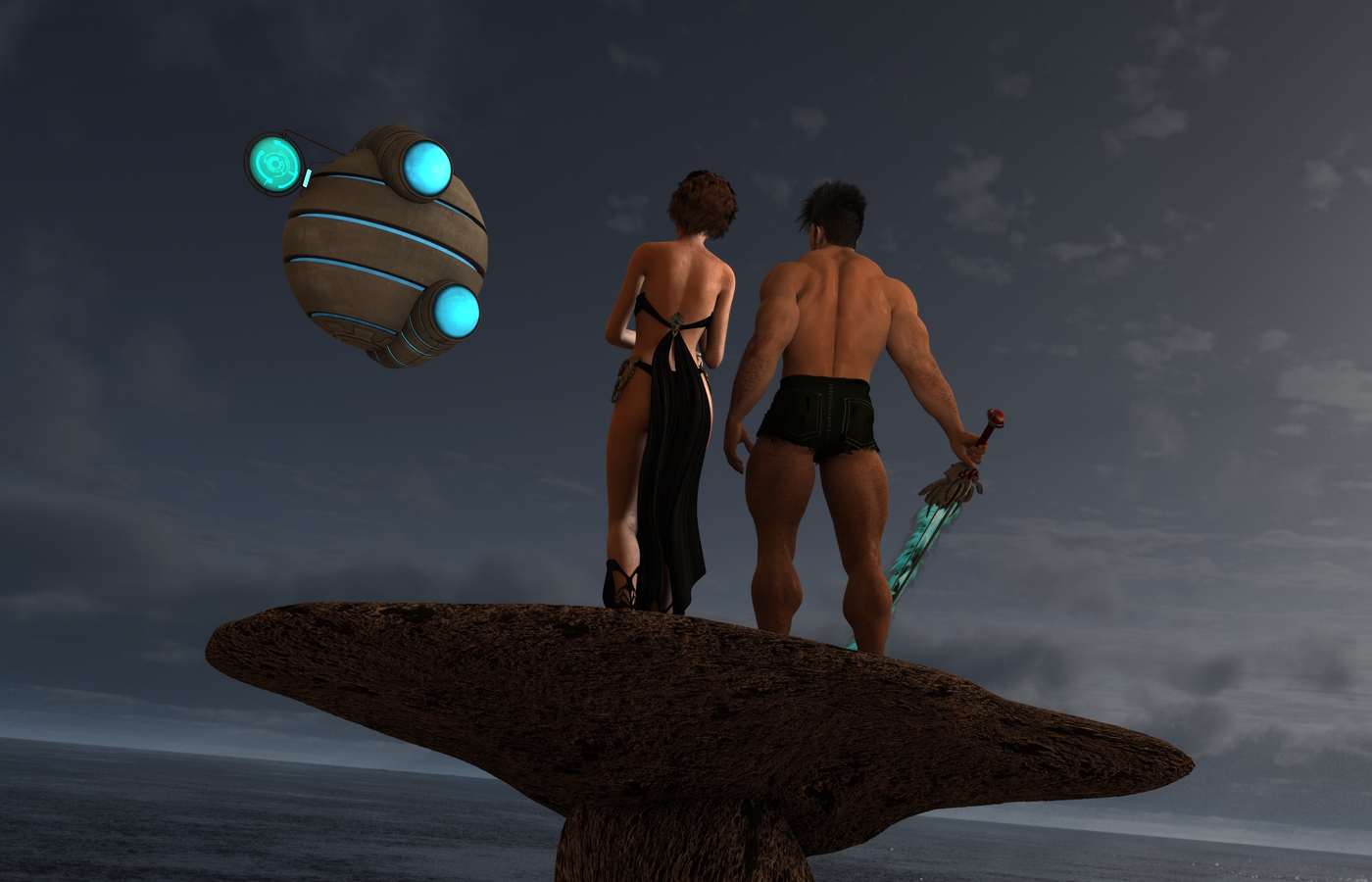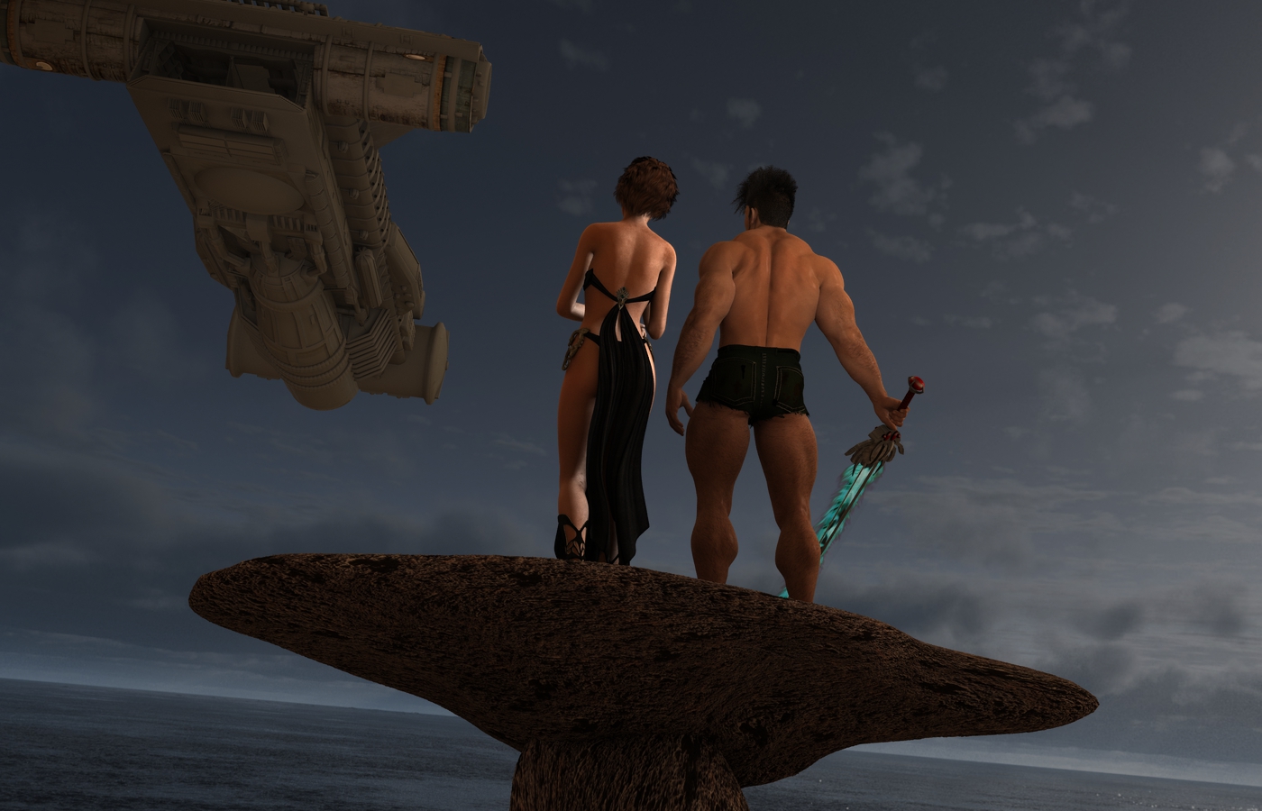 Gianni hat hier übrigens Sickleyields SkinnyJeans für M4 an. Die Felsen sind morphing rocks und das Meer und der Himmel ist von einem von den Easy-Environments.