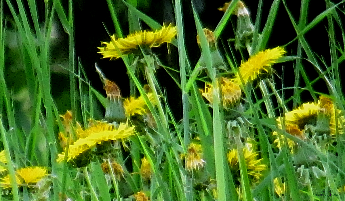 Ich liebe Wiesen auch heute noch, und zum mindest hat in diesem Jahr der recht regnerische Frühling verhindert, dass sie die Wiese vor unserem Haus mähen konnten... nun ist es leider wieder englisch, aber ich hatte mindestens zuweilen Freude daran, die viele Blumen zu sehen. Und als Kind habe ich mich auch immer in die Wiese gelegt und die vielen unterschiedlichen Blumen betrachten. Einige davon nebst Tannenzapfen, Ästchen und Moos habe ich dann für den heimischen Esstellerzwergarten dann gesammelt - oder wir haben uns Kränze geflochten, wie früher für auf den Kopf, die Jungs kriegten dann die grossen Pestwurzblätter als Hut und so sind wir losgezogen...lol