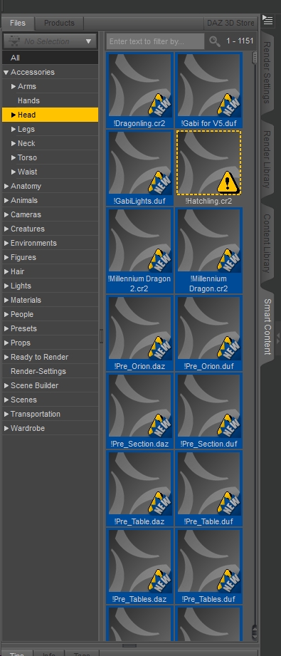 > im Tab-Menü des Content-Library Tabs (nicht des Smart Content Tabs) 'Scan Known Directories for Files...' mal kurz Rödeln lassen
