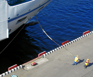Aufgenommen auf den Docks in St. Petersburg, beim Anlegen und Festmachen der Princess Anastasia