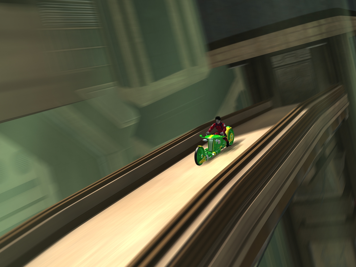 Mit Motion-Blur auf die Umgebung, nicht auf den Fahrer.