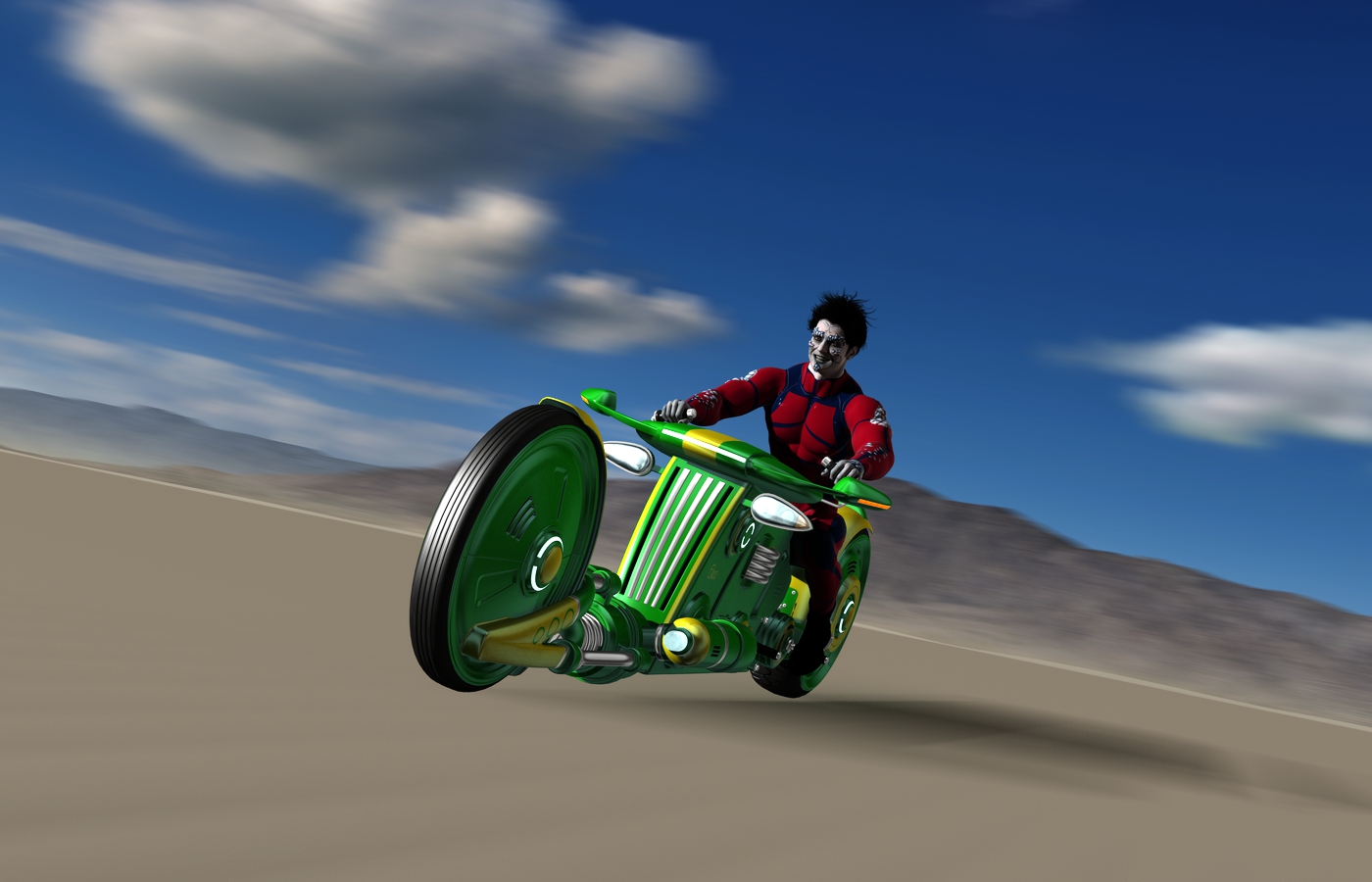 Mit Motion-Blur auf die Umgebung, nicht auf den Fahrer.