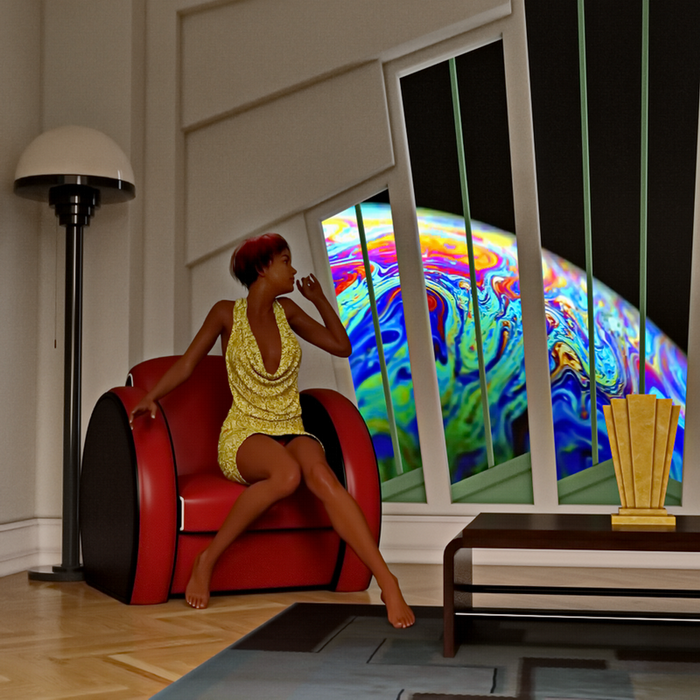 Der psychedelische "Planet" im Fenster ist übrigens eine Seifenblase, die ich genau so fotografiert und dann als Backdrop eingebaut habe.