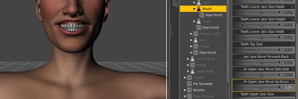 Bei genesis 3 ist das Problem (der Bug) inzwischen gelöst, aber wenn ich in Genesis 2 den Mund gleichzeitig für Happy und Flirting öffne, erscheint sowas: Die Zähne werden nicht mit gepost. Die Hotline konnte mir auch nicht weiter helfen (hat mich aber auf Genesis 3 vertröstet), also suche ich einen Morph für die Zähne. http://www.daz3d.com/from-cowa…oism-for-genesis-2-male-s ist schon mal ganz gut, löst aber das eigentliche Zahnproblem auch nicht.