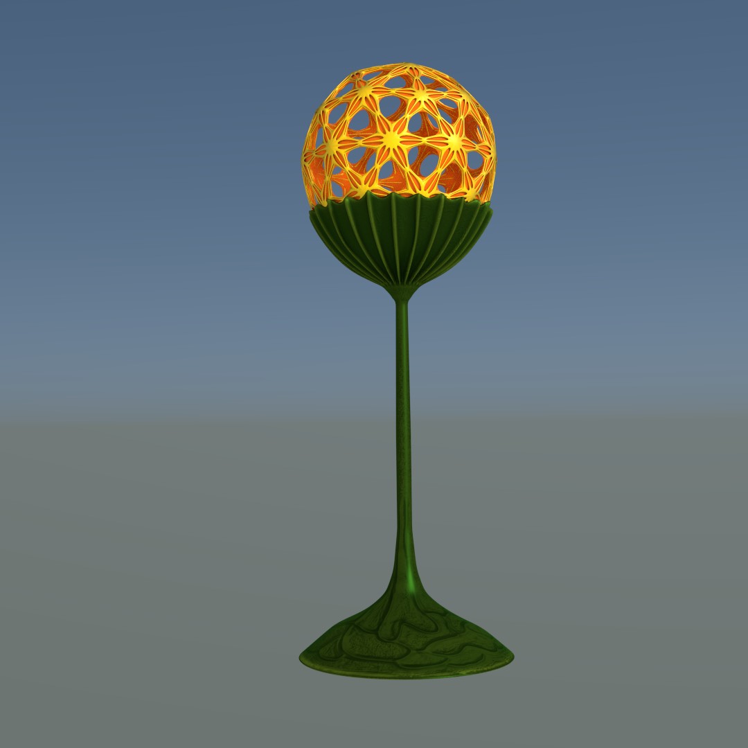 Kugel und Zylinder waren die Ausgangsformen, die Drehung des Stiels wurde mit einem Latticegitter gemacht
