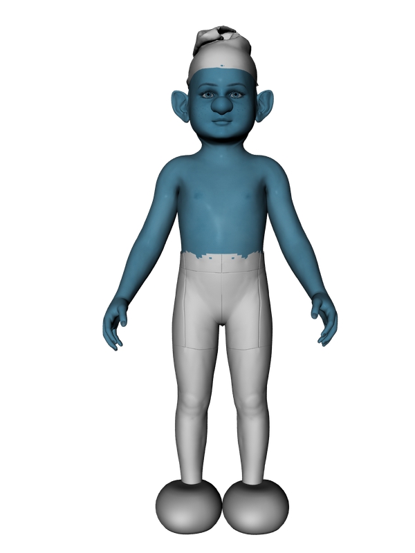 Was halt wirklich schwer ist fuer DAZ , ist das Arme, Beine, Kopf alles völlig skurile Formen und grössen haben. Sie auf dem Originalschlumpfbild. Der Kopf ist riesig im Vergleich zum rest. Waehrend Schulter quasi nicht vorhanden sind. Fuesse und Haende sind auch Dick und gross.