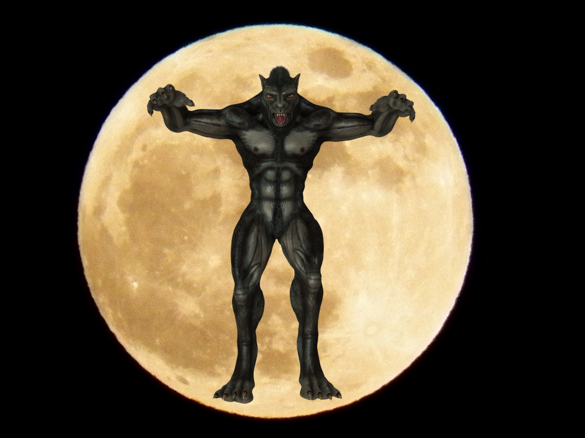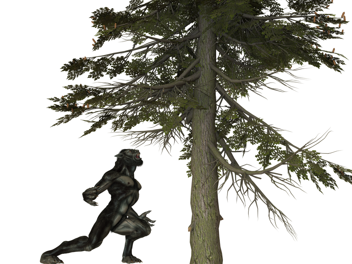 Genesis Werwolf genommen, Grant Fir als großen Baum und Public-Domain-Mondbild als Hintergrund.
