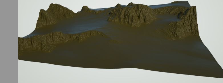 Das ganze nur mit einer exportierten Displacement-Map und Texturen aus World Creator auf eine uv-unwrappte Plane (300 x SDS) in Blender sieht dann so aus.