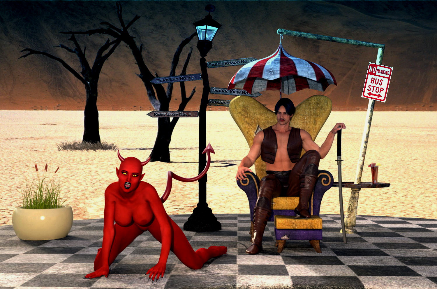 Das ist Surrealismus, wie Kushanku schon sagte und da geht ganz viel - Vielleicht etwas was Du ausprobieren könntest, wäre anstelle der Baumlandschaft hinter dem Kachelboden schlicht eine leicht modrige Klinkerwand... und den hellen Blumenpott auf der linken Seite wech (stattdessen die Laterne da hin. Gibt dann ein ganz anderes Bild, aber wäre vielleicht einen Versuch wert