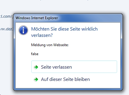 seit etwa einer Stunde stelle ich Folgendes fest: immer wenn ich im Forum eine Seite zurück gehen oder eine Seite schliessen will, erscheint plötzlich die im Screenshot angezeigte Meldung. Und zwar betrifft das nur unser Board - überall sonstwo läuft Alles wie gewohnt... :P