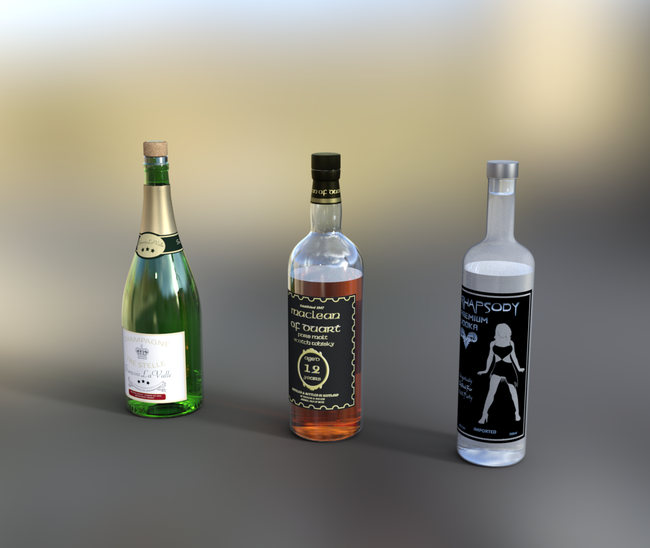 Auf dem allerersten Bild sieht das im Content-Fenster für mich danach aus, als sollten die Flaschen ein geprägtes Logo haben - also Displacement. Und da hab ich auch Probleme mit IRAY.