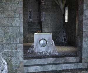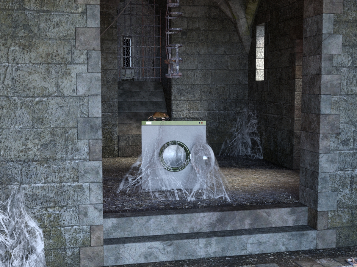 Die hat sich aber verlaufen. In dem alten Gemäuer gibt's doch sicher keinen Wasseranschluss, oder?