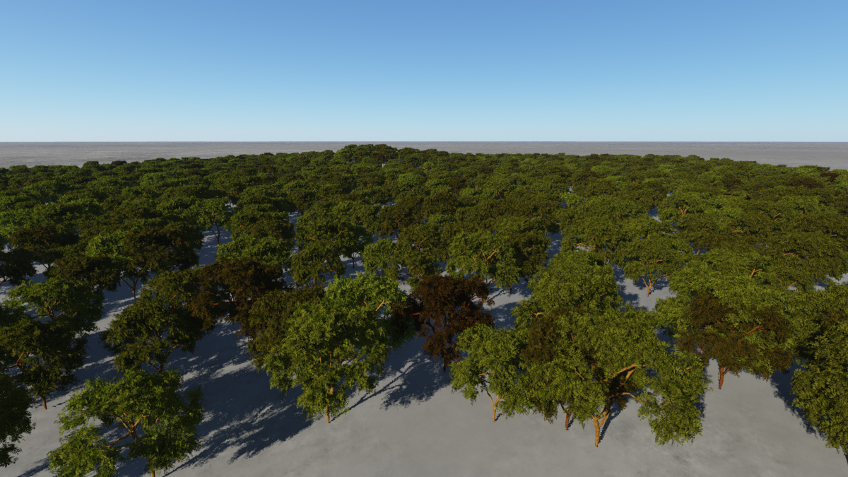 Betreffend Vegetation und Ressourcen scheint mir die aktuelle Situation nicht so schlecht. Das angefügte Beispiel mit mehreren hundert X-Frog Bäumen hat 10 Minuten auf einem älteren Rechner gerendert und ca. 3GB RAM verbraucht.