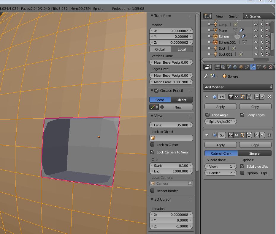 Blender Subsurface Modifier / scharfe Kanten