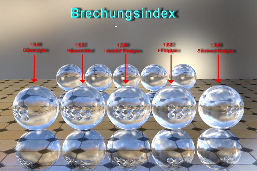 Ein paar Glasmurmeln auf den virtuelle Tisch legen, lieber 3Dfan, und daraus im Render irgendwelche Schlüsse abzuleiten ist eine heikle Sache.