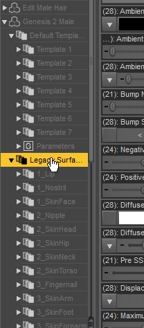 Leider ohne jedes Ergebnis: erstmal ist im Surface-tab das was man bisher dort kannte, jetzt plötzlich als Legacy-Surface gekenntzeichnet und neu ist eine Liste unter Genesis 2 Male -> Templates und dann Template 1 - 7.