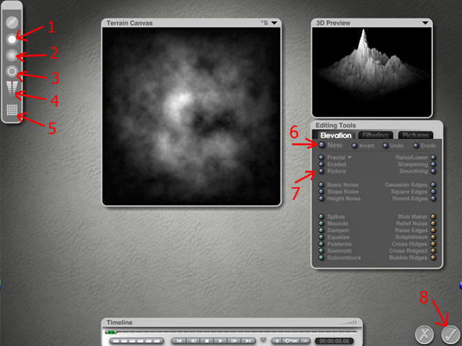 Aus dem Gedächtniss hab ich da ein Ground erstellt und über Berge die Struktur gegeben