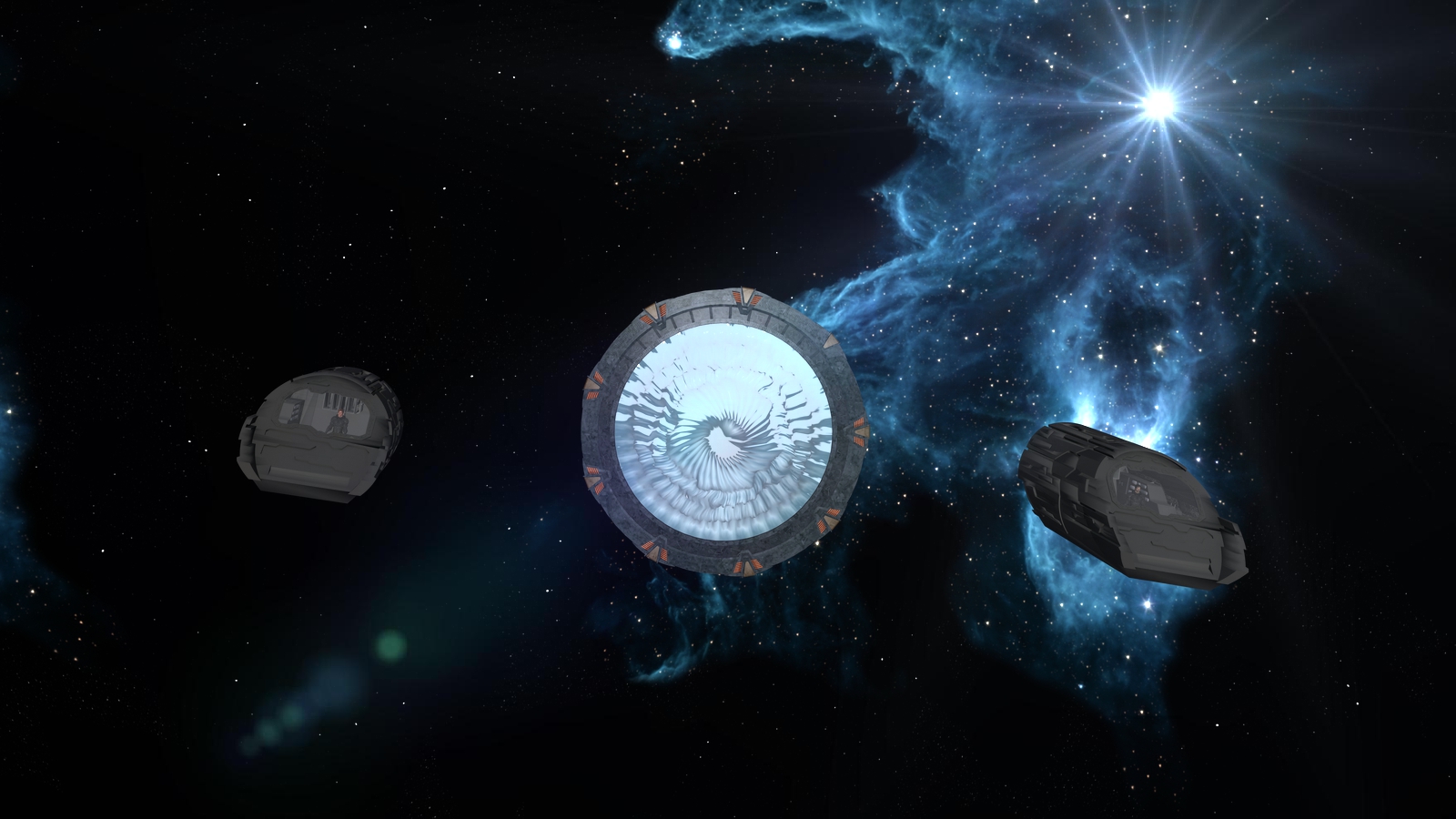 ich habe hier mal diverse Testrender mit 2 SGA Puddle-Jumpern (PJ) + 1 Stargate gemacht.
