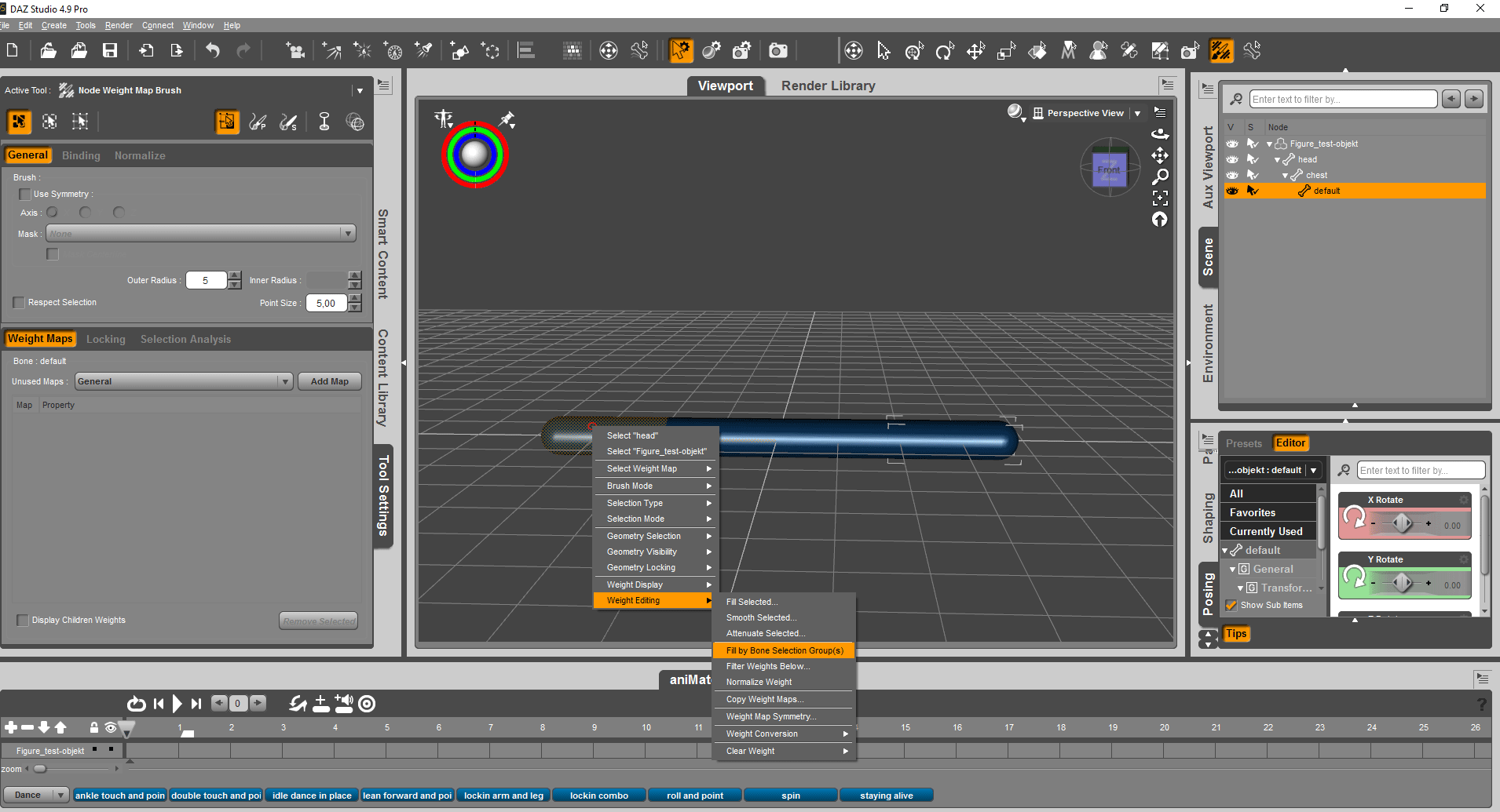 14. über das leuchtende Teil des Models mit der Mouse, rechte Taste und siehe im Bild klick an der Stelle Fill by Bone .....