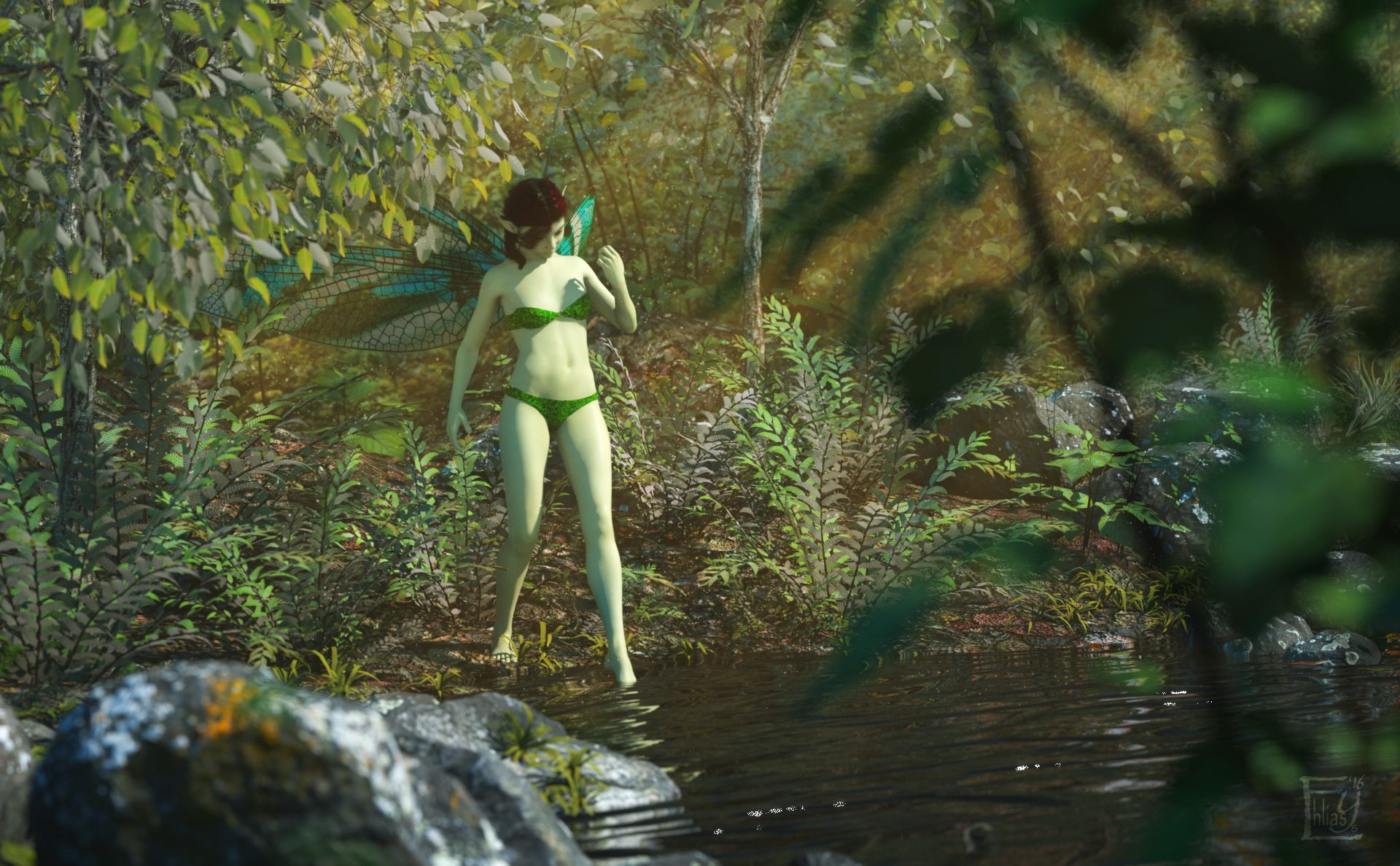 Kommt vom Körper her natürlicher rüber, obwohl sie doch etwas grün bei mir ankommt. Vermutlich ist das Wasser saukalt. Die Flügel sind nun optimal. ![]()