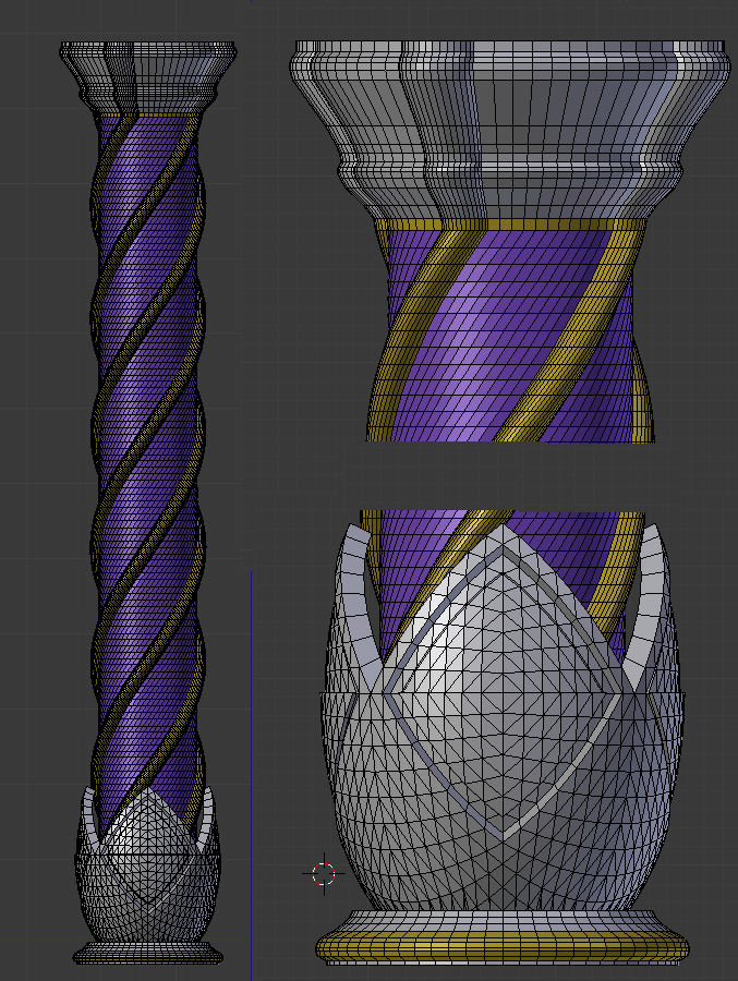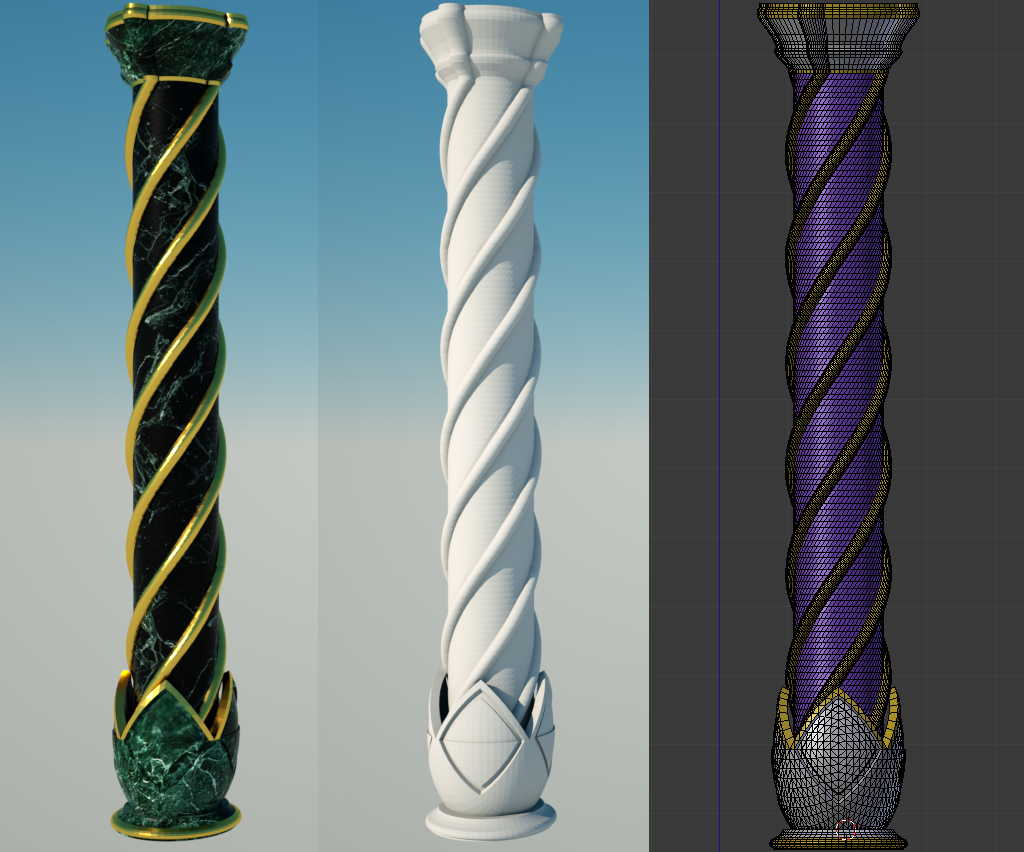 Das ist erstmal nur eine Säule (nur verschiedene Ansichten, render, clay-render und drahtgitter)