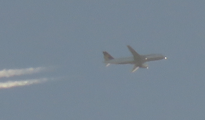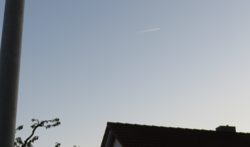 Nicht schlecht überrascht, war ich, als ich das Teil jetzt mal richtig ausprobiert habe, die Bildstabilisierung verrichtet wohl sehr gute Dienste, da ich aus dem Stand ohne Stativ oder anlehnen usw. brauchbare Bilder selbst mit größtem Zoom gemacht habe. Hier ein Beispiel, das erste Bild hat 50% der Originalgröße, das zweite auch, allerdings mit 30 fach Zoom auf das Flugzeug, das auf dem ersten Bild fast nicht zu sehen ist. Das dritte Bild ist das Flugzeug mit 30 fach Zoom in Originalgröße.