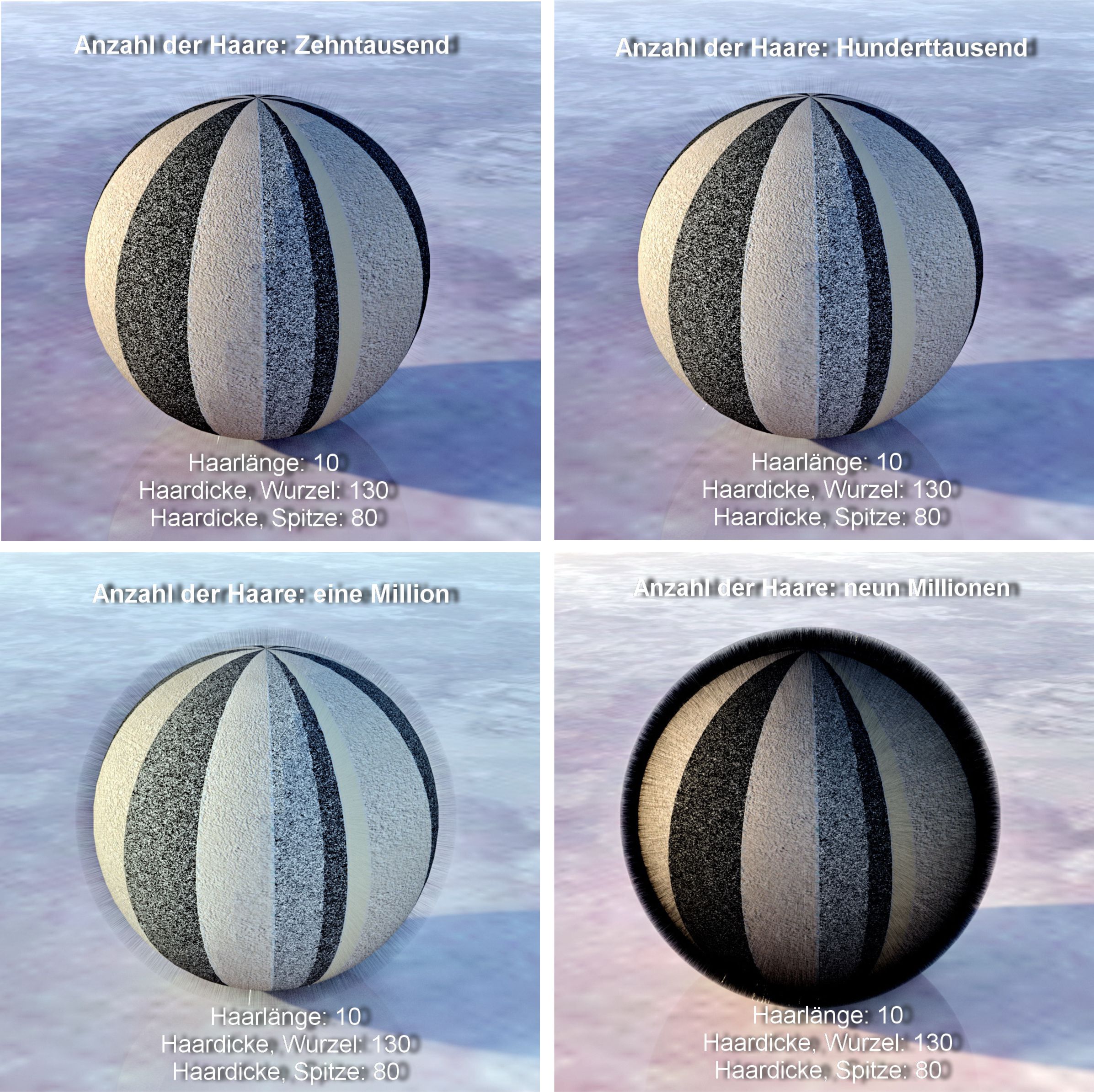 Drum habe ich mich für den steinigen Weg entschieden und diverse Einstellungen auf einer simplen Kugel gerendert.