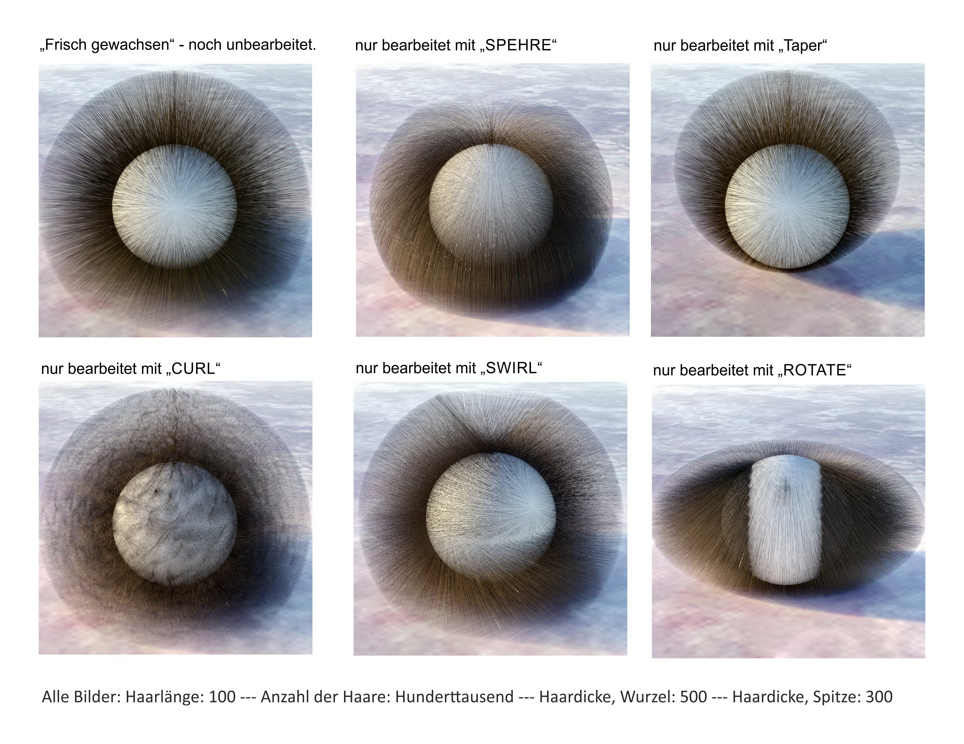 Und wenn die Grundeinstellung gefunden ist, dann kann man beginnen die Haare zu kämmen, schneiden und beliebig zu formen.