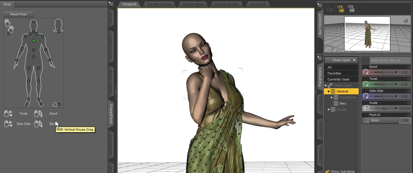 Ich habe oft das Problem dass, wenn eine Figur mit feritgen Posen gepost ist und ich möchte einige Teile wieder gerade ausrichten (resetten, auf 0 setzen), dann ist die Figur in ihrer krummen Position schon auf 0, beispielsweise beim Chest, obwohl das gar nicht die eigentliche Null-Position ist.